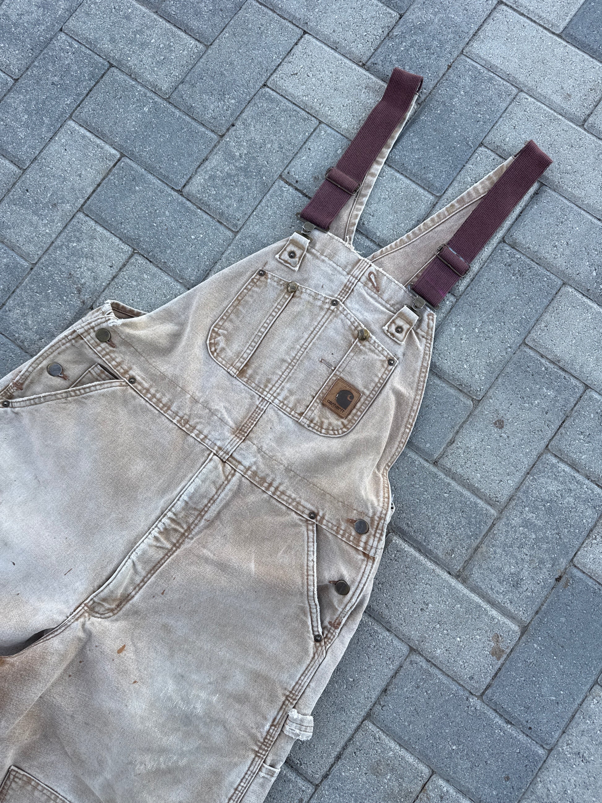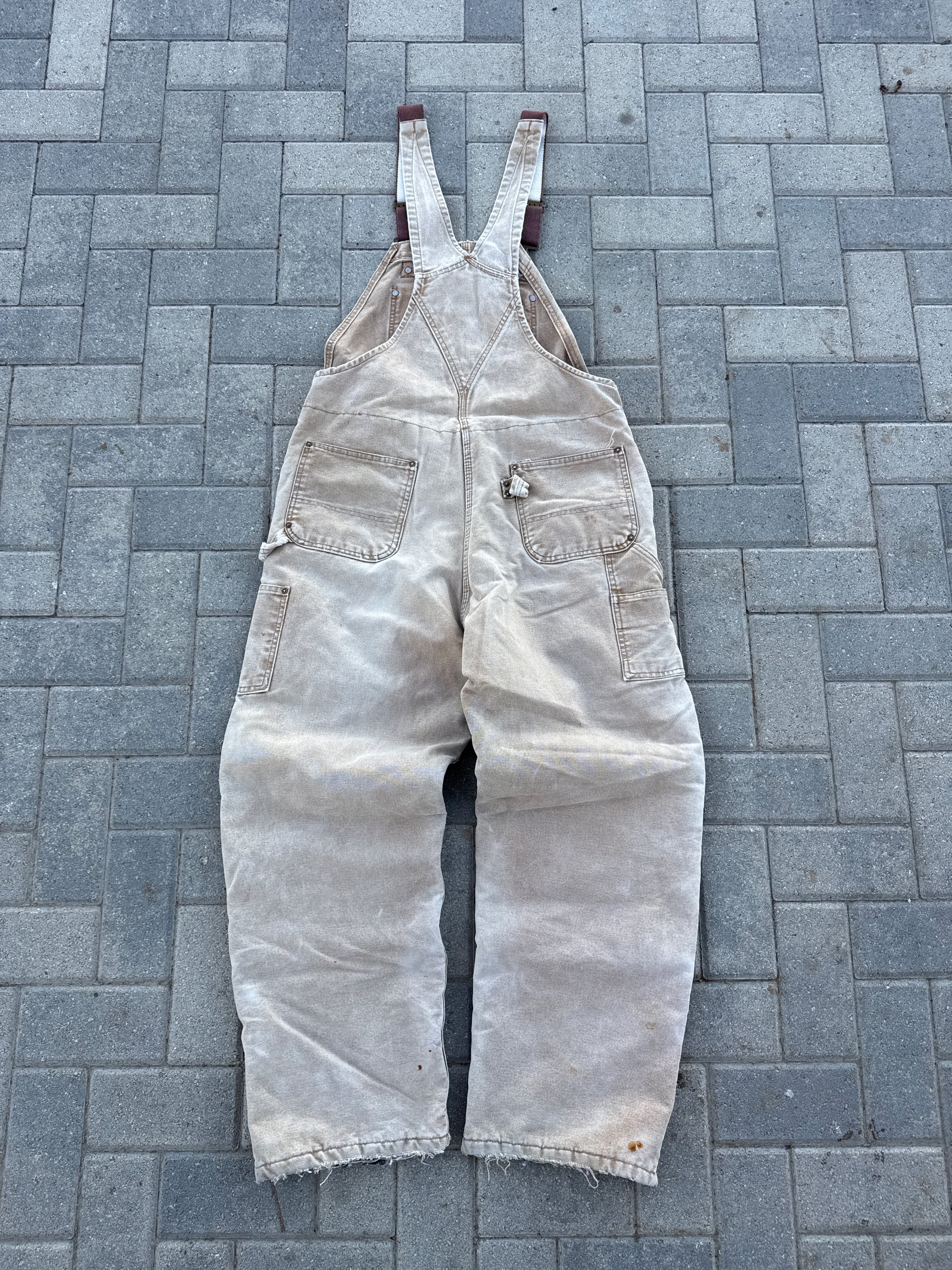 (38x32) Vintage Carhartt R01 Cream Double-Knee Insulated Overalls